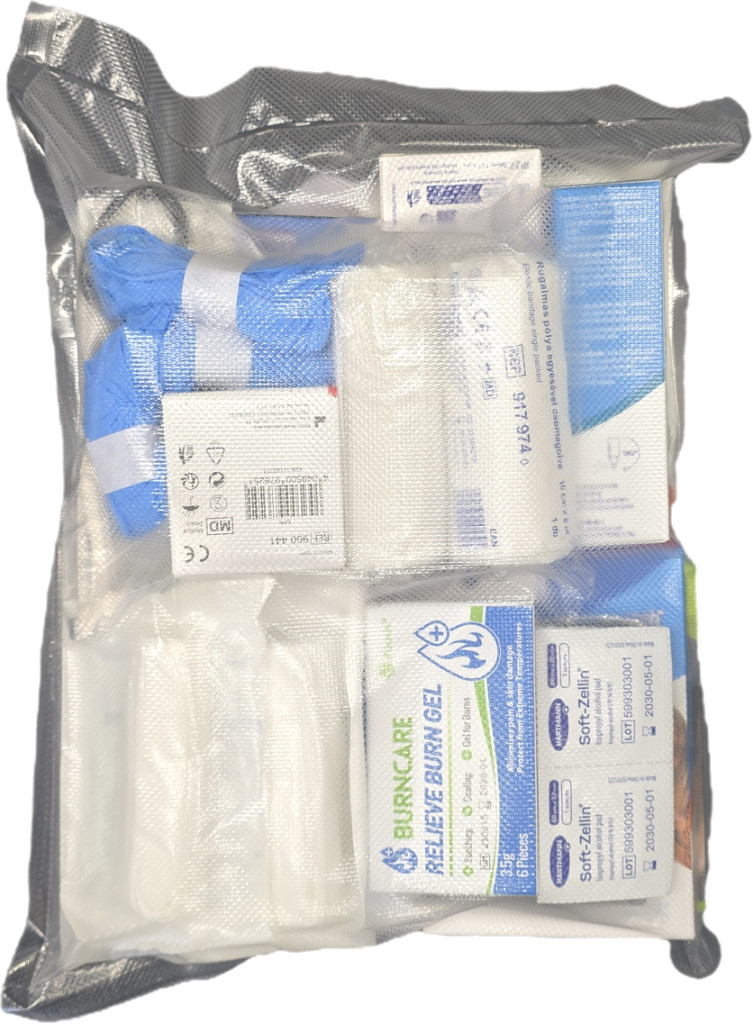 Ez a készlet nem helyettesíti a szakszerű orvosi ellátást, hanem az elsődleges állapotstabilizálást szolgálja a további segítség megérkezéséig.