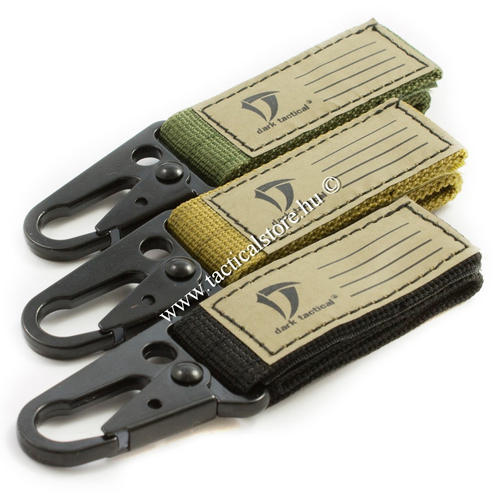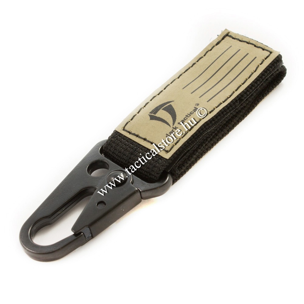 Egyszerű kialakítású, karabíneres kulcstartó, melyet a tépőzáras fül segítségével akár övre, hátizsákok hevedereire, vagy más rögzítési pontra helyezhetünk.