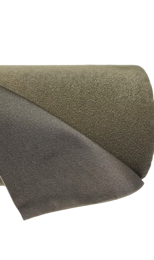 140 cm széles, laminált velúr tépőzáras anyag puha hurkos felülettel. Színe: RAL7013 'graugrün' Egész méterben rendelhető, ideális taktikai, ruházati, kiállítási és gyógyászati alkalmazásokhoz.
