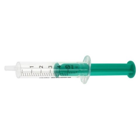 5 ml – single use syringe with green piston.
